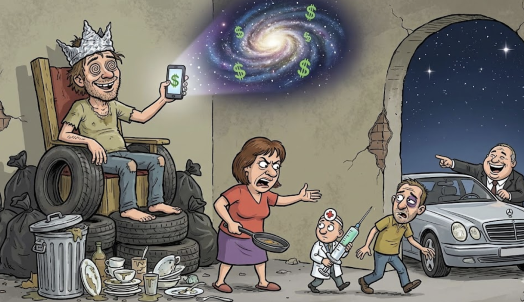 Они все думают, что живут. А они спят! Жуют, размножаются и гадят. А я… я созерцаю! Я знаю, что там, наверху, есть высший смысл. Просто он, этот смысл, пока не стыкуется с моим кошельком. Где-то там, в небесной канцелярии, бухгалтер напутал. Или Меркурий платежку задержал.